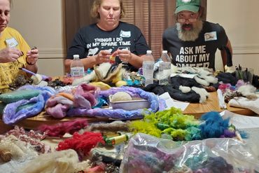 This is our MOST comprehensive class of starting with raw wool right off the sheep to scouring, dyeing, drum carding, spinning, and an overview of needle felting, wet felting, weaving, etc.
